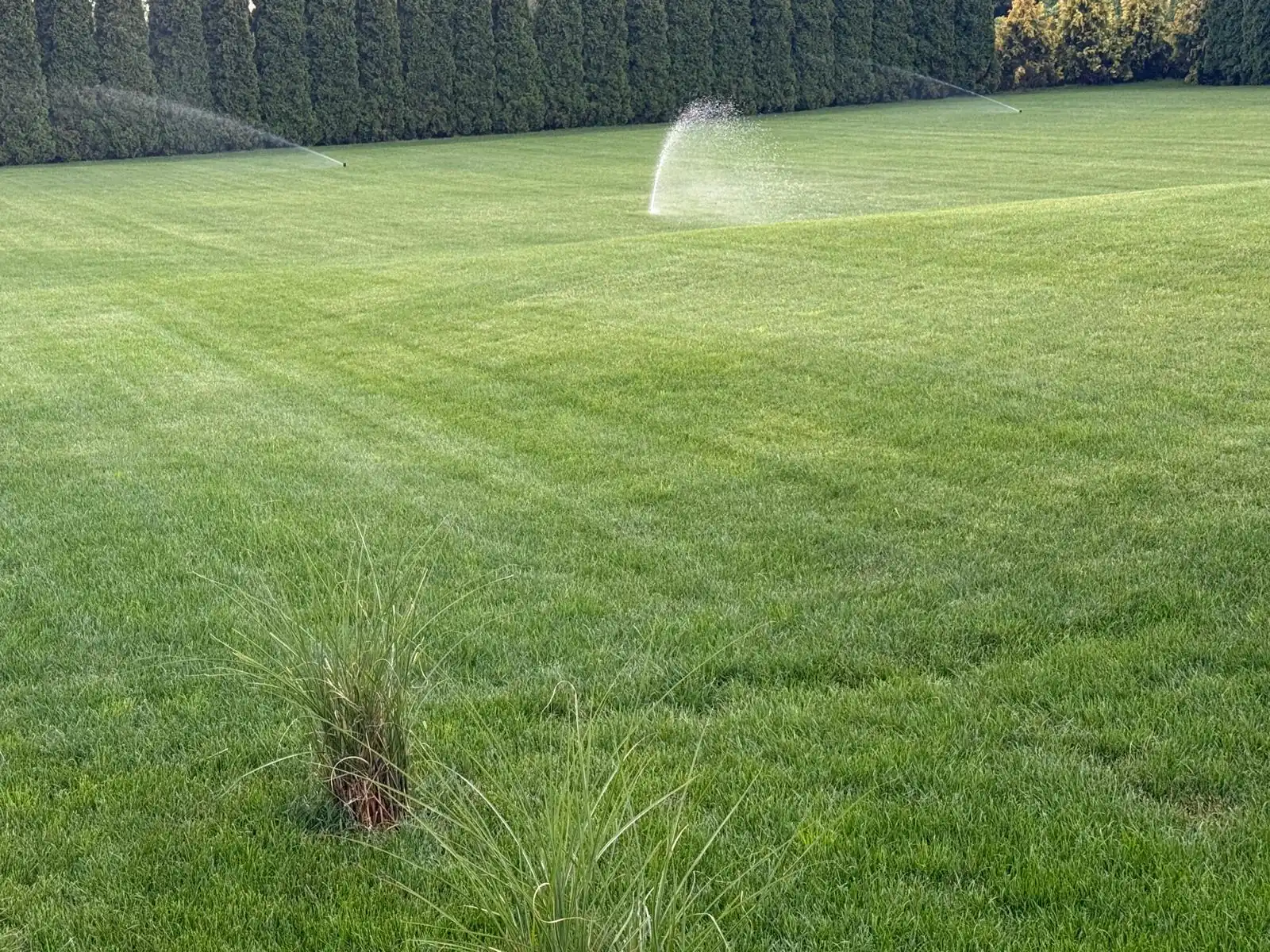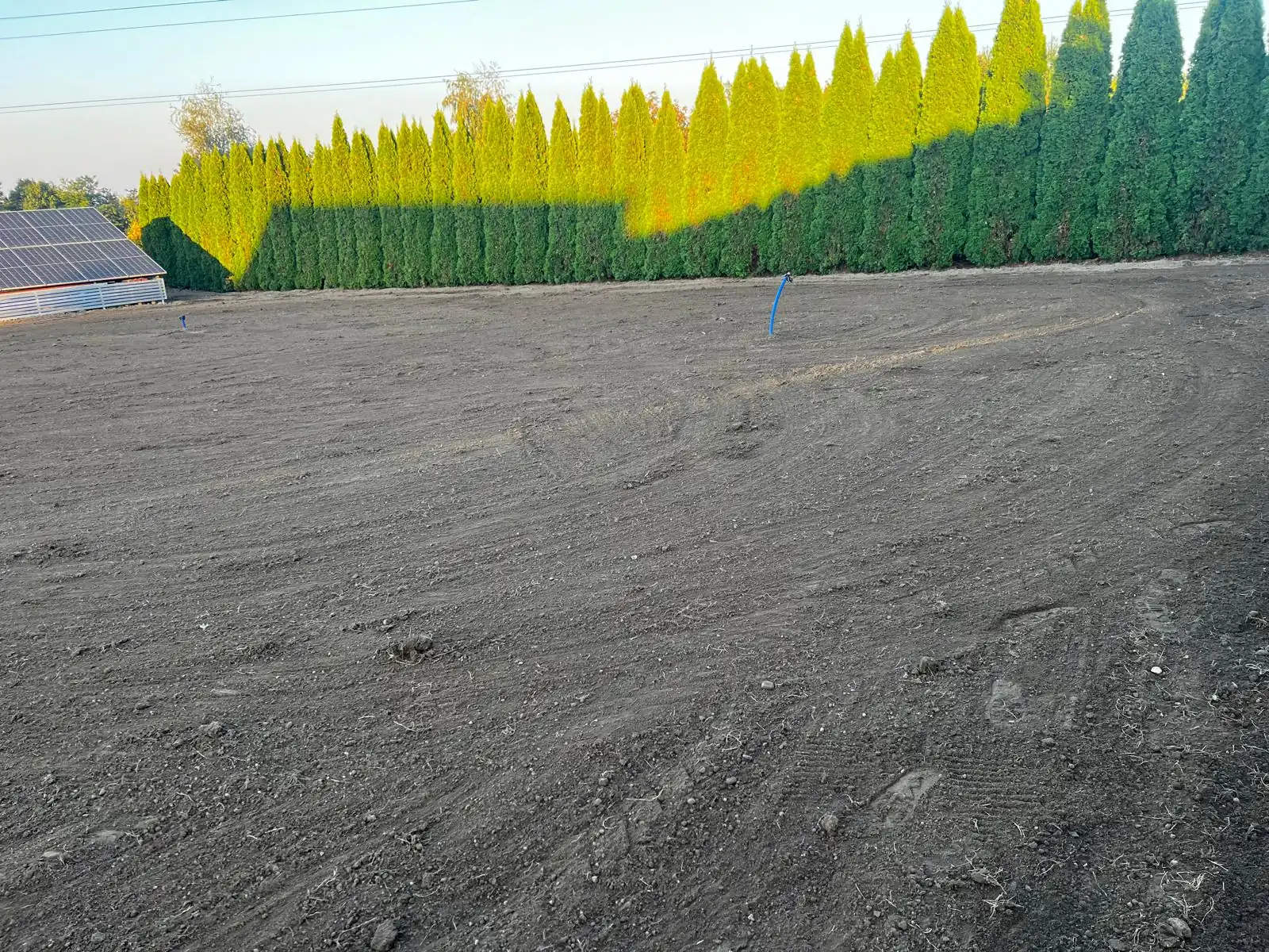 Kompleksowa realizacja ogrodu w stylu nowoczesnym. Projekt obejmował niwelację terenu, system automatycznego nawadniania, rozprowadzanie wody deszczowej do zbiorników, siew trawy i nasadzenie roślin.